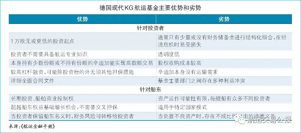 当然,德国的KG加吨位税模式也有无法回避的弱点(见表),因为它很难抵御航运低迷期的负面影响。2008年全球金融危机的爆发使得德国航运KG基金在衰退的囧途中难以自拔,其倒闭潮愈演愈烈,且此种破产从单船基金公司发展到非单船基金公司,如Appen资本、Embdena和EEH基金公司。
