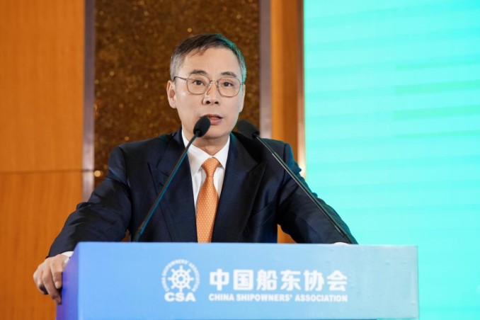 中国船东协会会长万敏,交通运输部海事局副局长施滨峰,上海市交通委员会副主任叶兴为会议致辞。