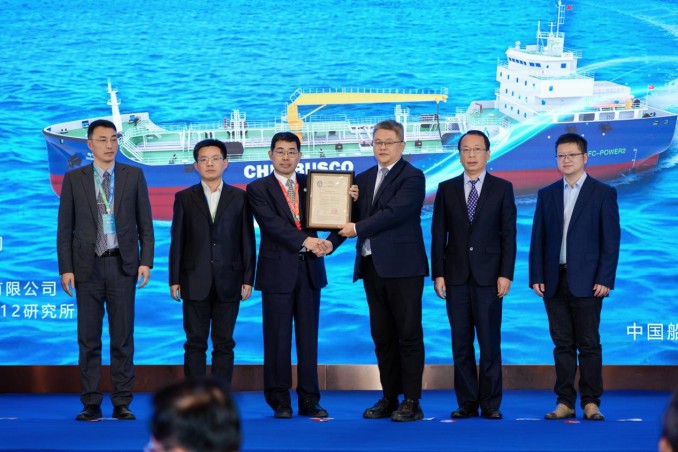 大会同步举行2600吨氢电混合动力加油船AIP证书发布仪式。该船型采用氢燃料电池增程技术实现低污染零排放,其设计方案获中国船级社原则性认可,标志着我国水上绿色加注装备研发取得重要突破。