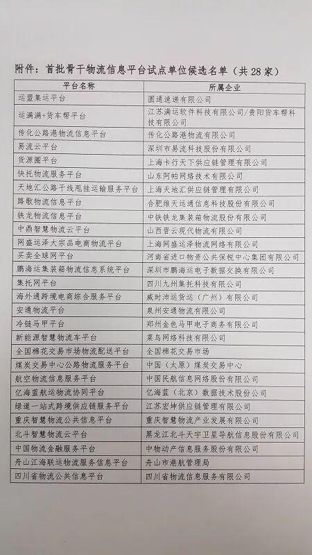 九、三部门联合发布首批骨干物流信息平台试点名单