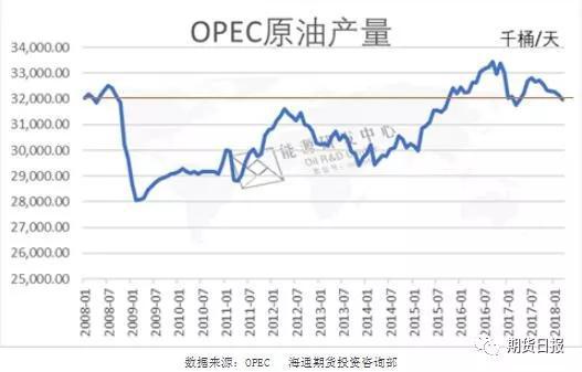 7、 为了抵消美国原油产量大增带来的供应过剩压力,OPEC在过去的一年半时间内将产量下调了150万桶/天。你能想到2018年OPEC产量跟2008年的产量一样?