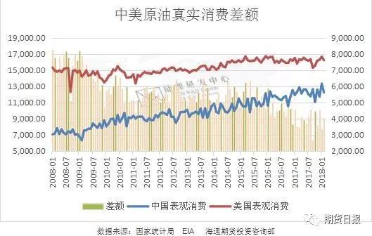 虽然在原油消费总量上,美国仍然领先中国一个数量级约600万桶/天左右;但在进口量方面美国在2017年已经被中国正式超越,2018年以来随着美国的出口量突破200万桶,其净进口量仅为600万桶/天,而截至4月中国2018年的净进口量突破了900万桶/天,与美国净进口的差距迅速拉大;在进口方面2国关系完成了互换;
