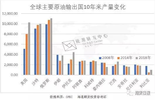 1、过去十年原油供应共增长了1260万桶/天,但OPEC产量2018年跟十年前2008年的产出几乎一样均为3200万桶/天;