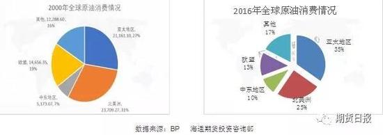 从地区划分来看,全球原油消费主要增量在亚太地区,占比从2000年的27%增长到了35%;中东地区也增长3%,其原油加工能力增加明显。北美洲、欧盟原油消费均占比减少6个百分点,在消费增量方面几乎没有贡献。