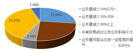 图3 各大航运相关企业业务量受贸易战影响程度调查结果