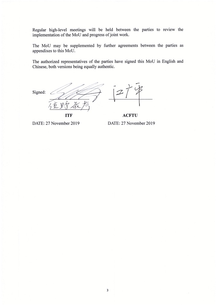 5.After the consultation meeting, if the two parties can reach an agreement on the termination of the labor contract or employment agreement, they shall agree on the rights and obligations of both parties in writing, and clearly agree on their respective responsibilities, wage settlement list, settlement method and settlement time, and the mode and time of settlement of crew repatriation fees and other statutory or agreed expenses, which shall take effect after being signed (sealed) by both parties. The captain may perform the signing procedure on behalf of the company. If an agreement cannot be reached, the matters and facts that can be agreed upon shall be confirmed in writing under the witness of the coordination group, and shall be confirmed by the signatures of both parties and members of the group, and shall remain on board for the record; for disputes, complaints shall be made in accordance with the provisions of Chapter 12 of the collective agreement or labor disputes shall be resolved in accordance with the law. The captain may perform the signing procedure on behalf of the company.