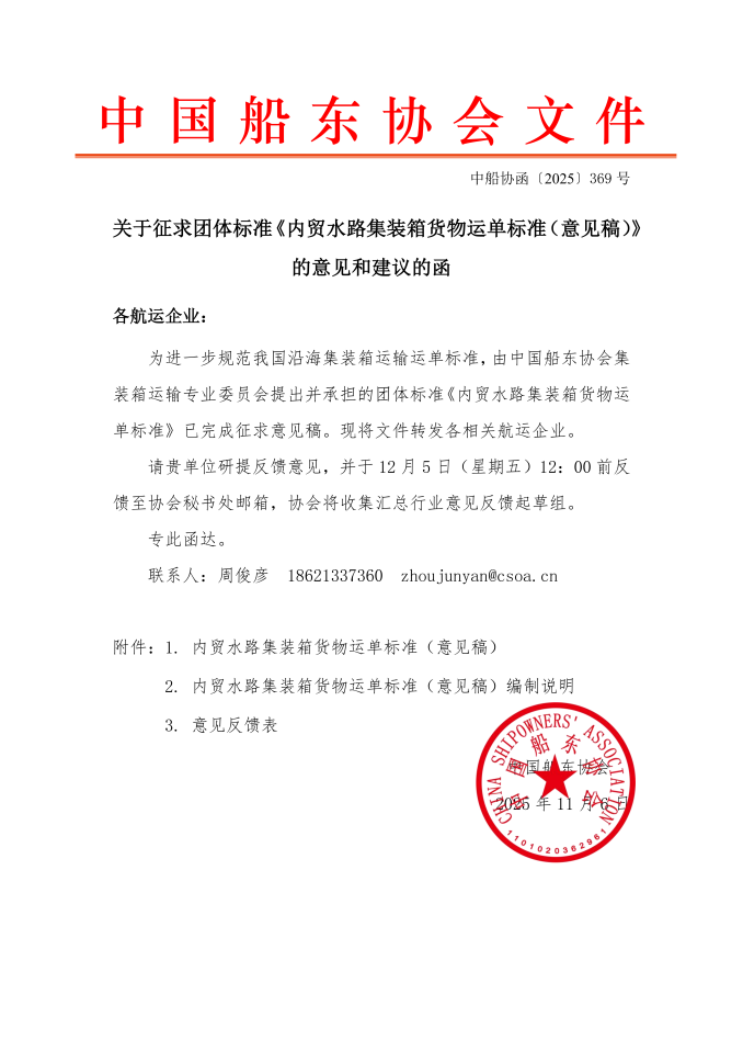 关于征求团体标准《内贸水路集装箱货物运单标准(意见稿)》的意见和建议的函
