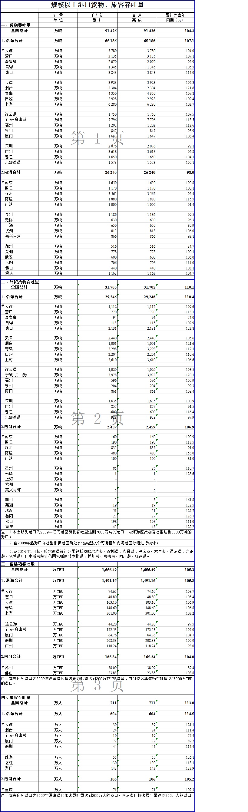 2014年1月规模以上港口货物、旅客吞吐量