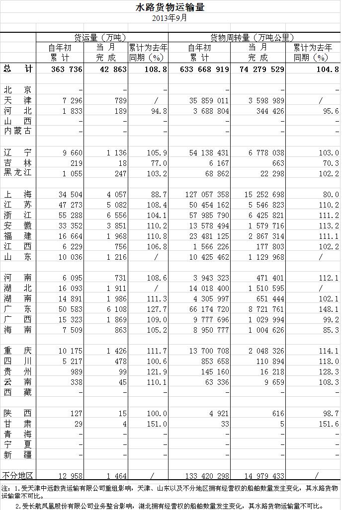 2013年9月水路货物运输量