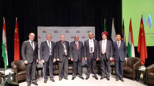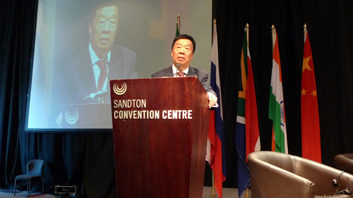 马泽华董事长在金砖五国工商理事会主席发言环节中,代表中方理事会向大会阐述了中方在促进金砖国家之间以及金砖国家在非洲大陆的贸易和投资的积极立场,并向大会介绍了中方在金砖国家工商理事会机制下关心的重要问题:贸易自由化和金砖国家企业国民待遇、建立金砖国家信息交流平台和促进金砖国家签证便利化。