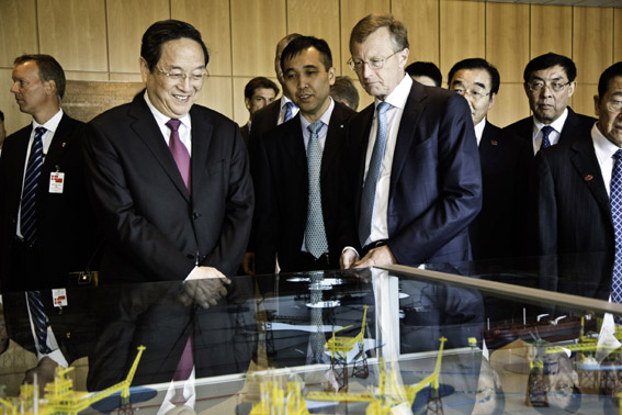 中国国家政协主席俞正声在丹麦友好访问期间,于2013年6月7日前往马士基集团位于哥本哈根的集团总部进行了参观访问。
