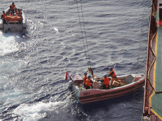 台塑海运公司所属贵华轮慰问中国海军护航编队