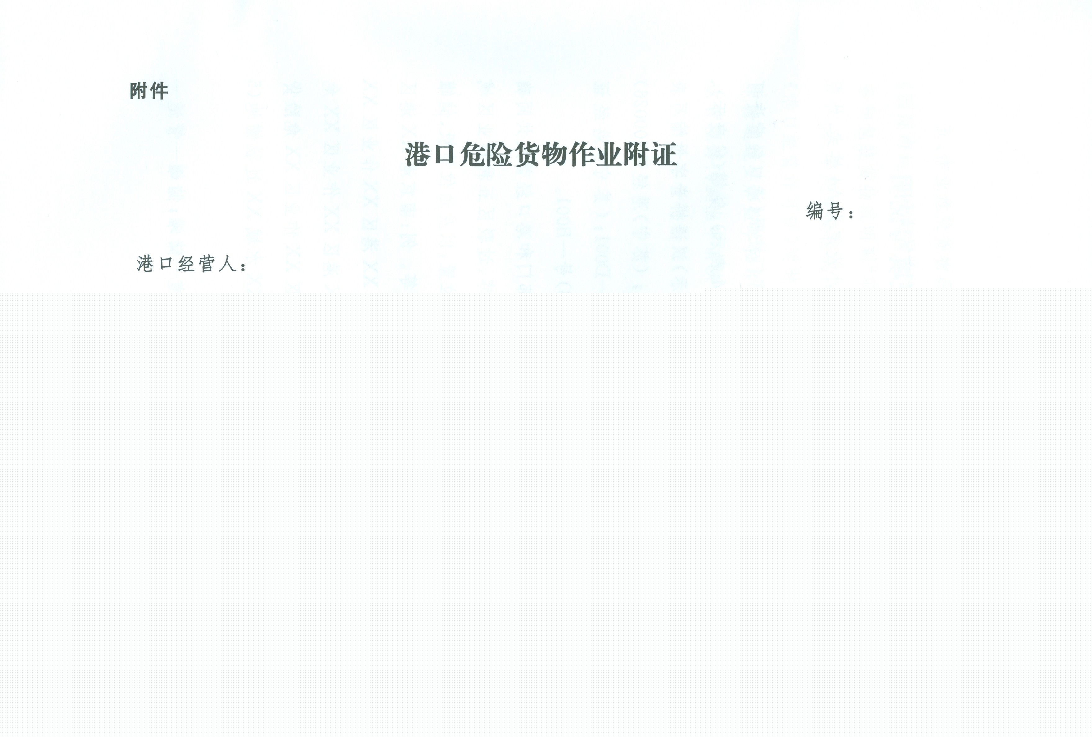 《港口危险货物作业附证》应当载明危险货物作业的具体区域范围、作业方式、允许作业的危险货物品名(集装箱和包装货物载明到“项别”)及其他相关事项。